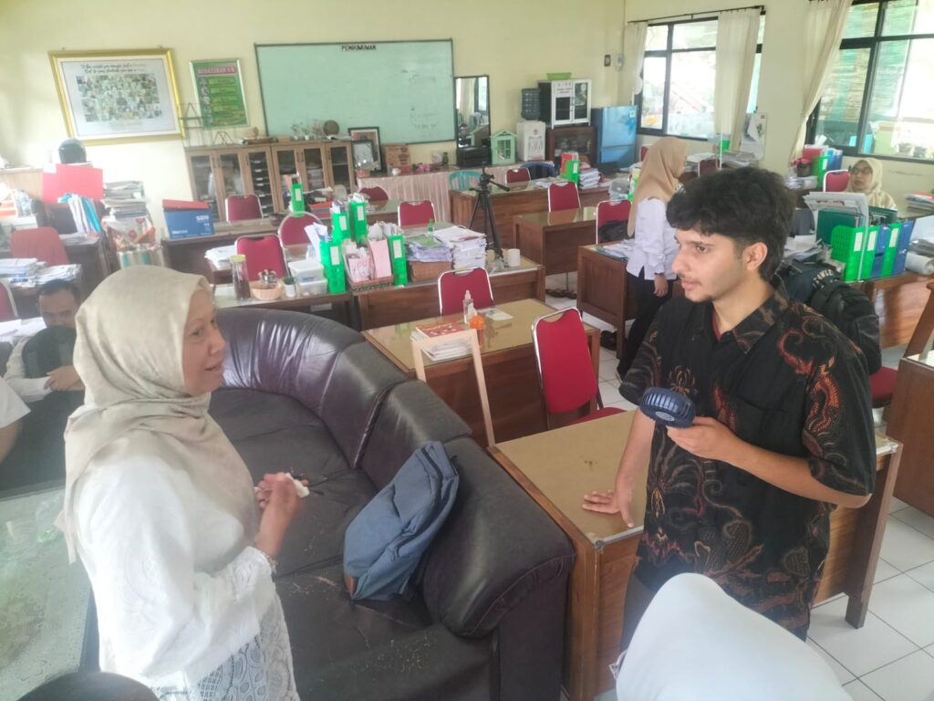 Beradcan Orak saat berkenalan dengan guru-guru SMAN 2 Batu dan sempat berdialog dengan Siti Aminah, S.Pd., guru Bahasa Inggris SMAN 2 Batu di ruang guru.