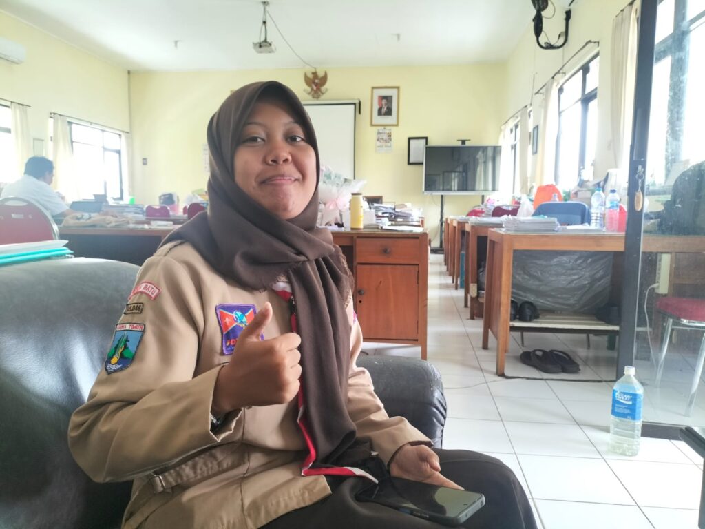 Alviena Citranti Anindya Putri, siswa kelas X-6 SMAN 2 Batu yang berhasil meraih juara 1 Lomba Poster Moderasi dan berhak mengikuti Puncak Festival Literasi Keagamaan yang akan diselenggarakan di Jakarta, 20 November 2025.