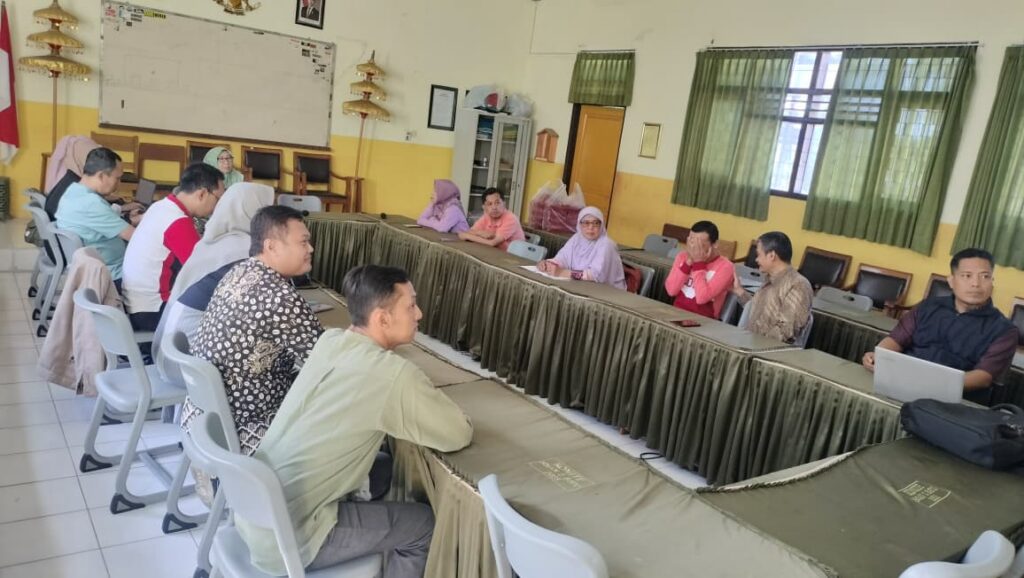 Ketua Tim Adiwiyata SMAN 2 Batu, Wiwik Sugiarti, M.Pd. saat memimpin rapat koordinadi persiapan diklat kader adiwiyata di ruang pertemuan SMAN 2 Batu, Jumat (12/9/25).