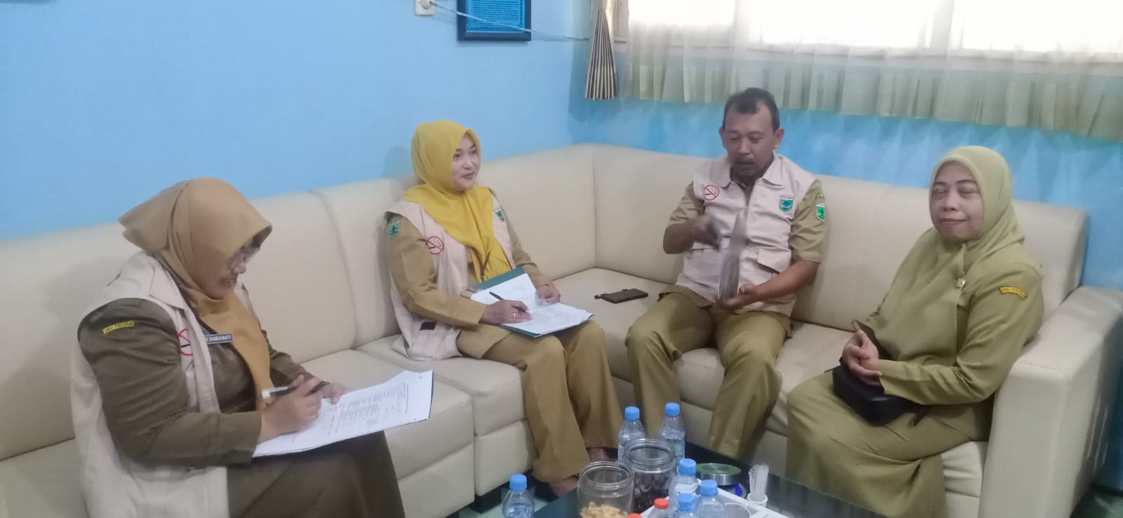 Tiga orang tim penilai lomba internalisasi sadar dan tertib Kawasan Tanpa Rokok (KTR) dari Cabdin Kota Malang-Kota Batu dan dari Dinkes Kota Batu diterima Wakil Kepala Sekola Bidang Kehumasan, Wahyu Tri Andajani.